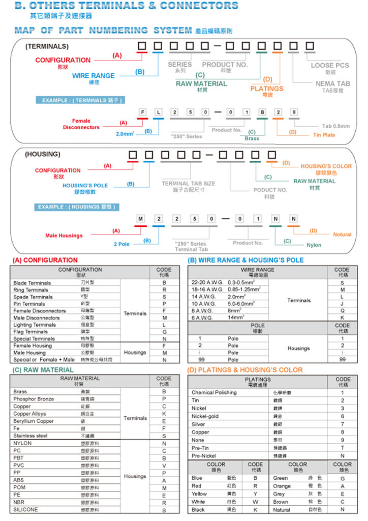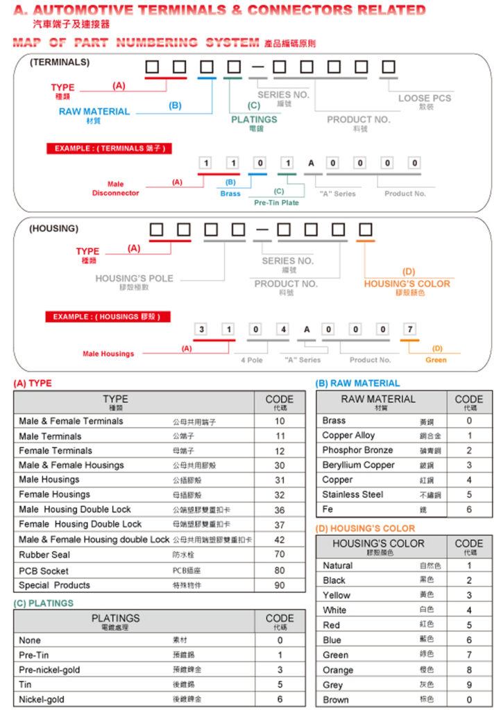ตารางแสดงรายละเอียดรหัสของ Connectors & Terminals
