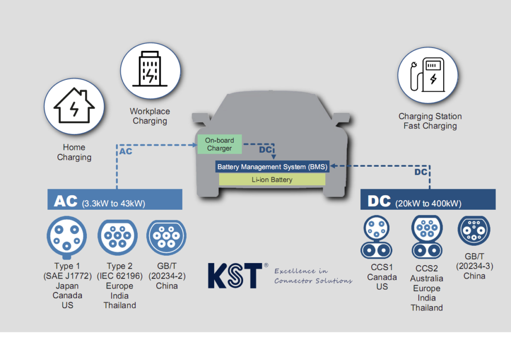 1. Normal Charge เป็นการชาร์จด้วยไฟ AC โดยชาร์จผ่าน On Board Charger ที่ยู่ภายในตัวรถยนต์ไฟฟ้า ซึ่งทำหน้าที่ในการแปลงไฟ AC ไปเป็นไฟ DC ขนาดของตัว On Board Charger จะขึ้นอยู่กับยี่ห้อรถยนต์ ซึ่งขนาดของ On Board Charger จะมีผลต่อระยะเวลาในการชาร์จไฟของแบตเตอรี่รถยนต์ ยกตัวอย่างเช่น รถยนต์ไฟฟ้าที่มีแบตเตอรี่รถยนต์ขนาด 24 KWh และมี On Board Charger ขนาด 3 KW ระยะเวลาในการชาร์จจะอยุ่ที่ 8 ชั่วโมง