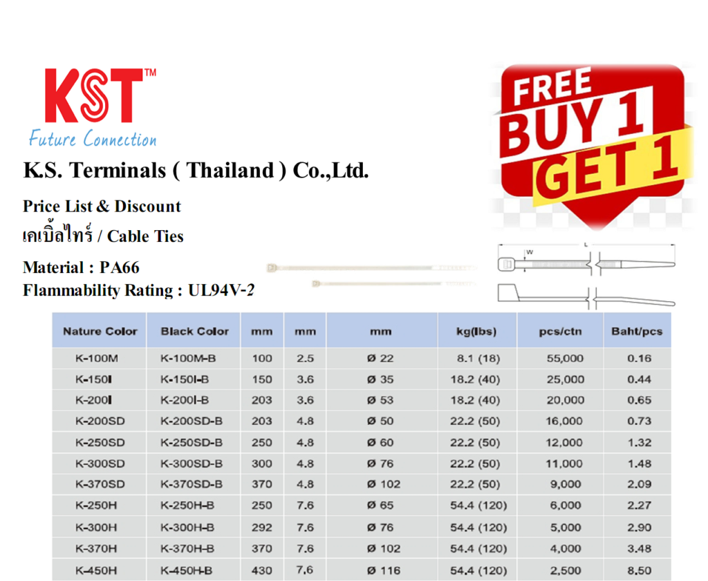 โปรโมชั่น เคเบิ้ลไทร์ ซื้อ 1 ลัง แถม 1 ลัง