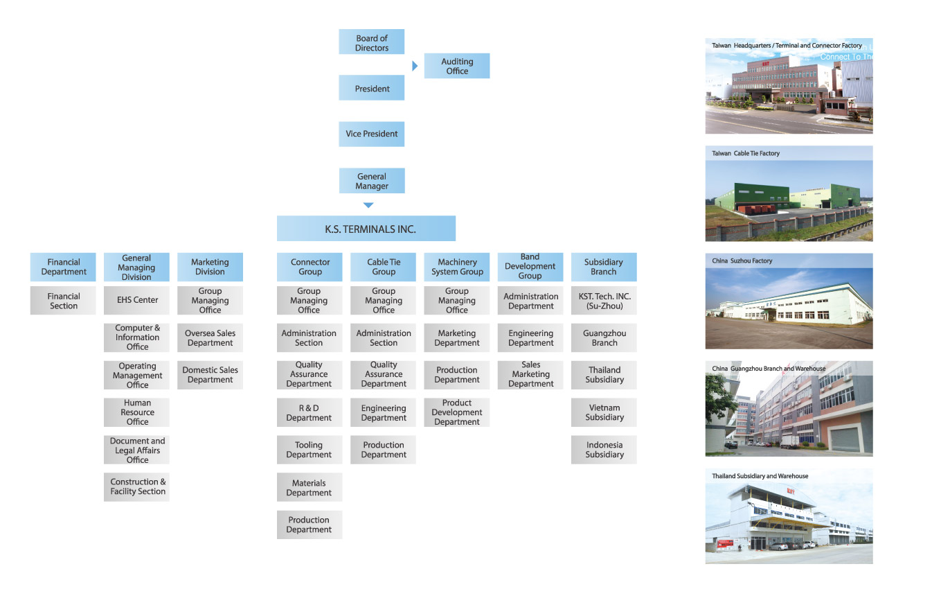 Connect with Us, Connect to The Future. K.S. TERMINALS has devoted over 40 years to electrical terminals and wiring accessory products. Recently, KST invested huge R&D resources in developing connectors for the automotive, electrical cars, and solar energy industries. Through unremitting research, persistence in quality and safety, the KST products have won world-wide recognition in the field of terminals and connectors.